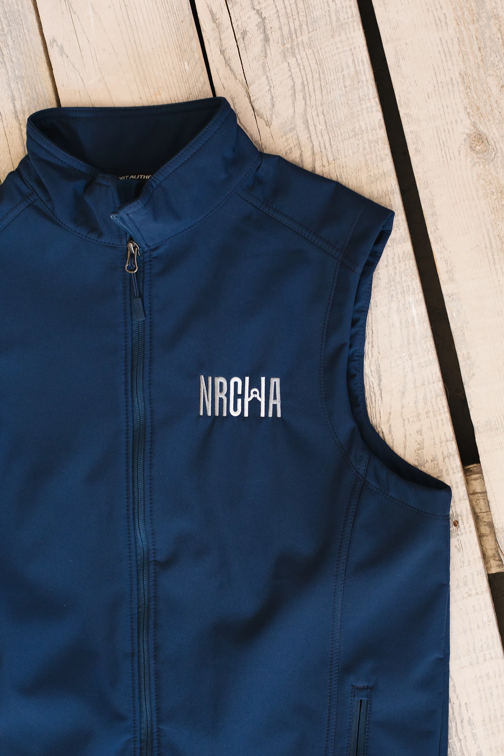 The NRCHA Logo Signature Series Men's Vest in navy. Classic and functional soft shell fabric. Size Chart